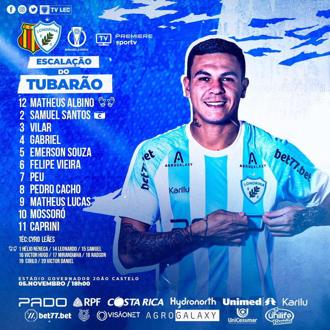 Boa tarde, torcedor Alviceleste! Daqui a pouco, às 18h, no Estádio Castelão, em São Luís-MA, a equipe principal do Londrina Esporte Clube visita o Sampaio Corrêa, pela 38ª e última rodada do Campeonato Brasileiro da Série B!
