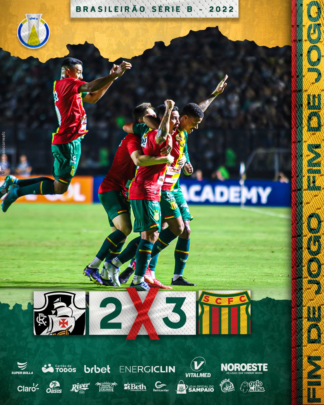 A equipe do Sampaio Corrêa venceu o Vasco da Gama, no Rio de Janeiro-RJ, no Estádio São Januário, pelo placar de 3 a 2.