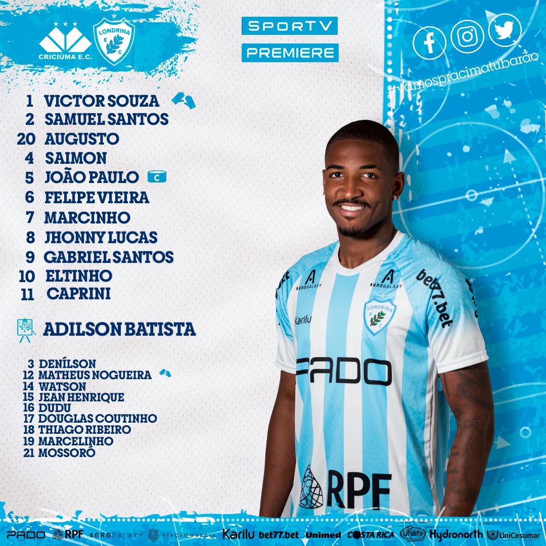 Boa noite, torcedor Alviceleste! Daqui a pouco, às 20h, no Estádio Heriberto Hülse, em Criciúma-SC, a equipe principal do Londrina Esporte Clube enfrenta o Criciúma, pela 2ª rodada do Campeonato Brasileiro da Série B!
